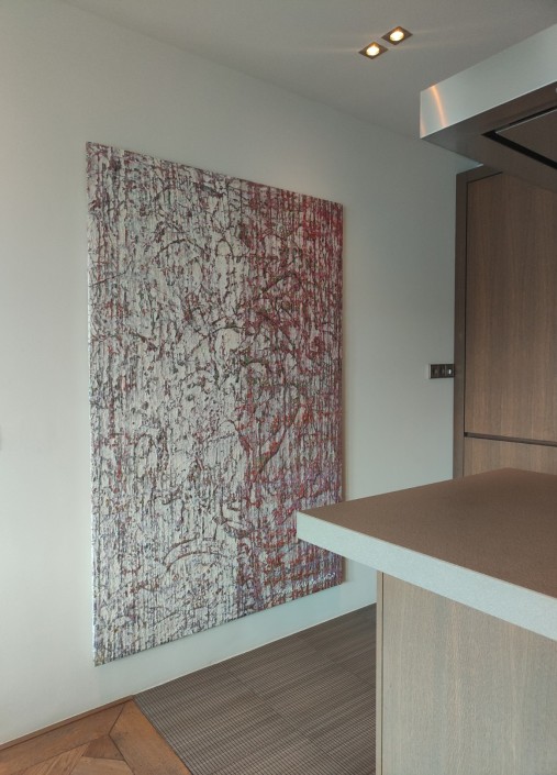 Dripping Techniek: Naast action painting gebruikt hij ook de dripping techniek, waarbij verf op het doek wordt gedruppeld of gespoten. Dit creëert een gevoel van beweging en energie in zijn werken.